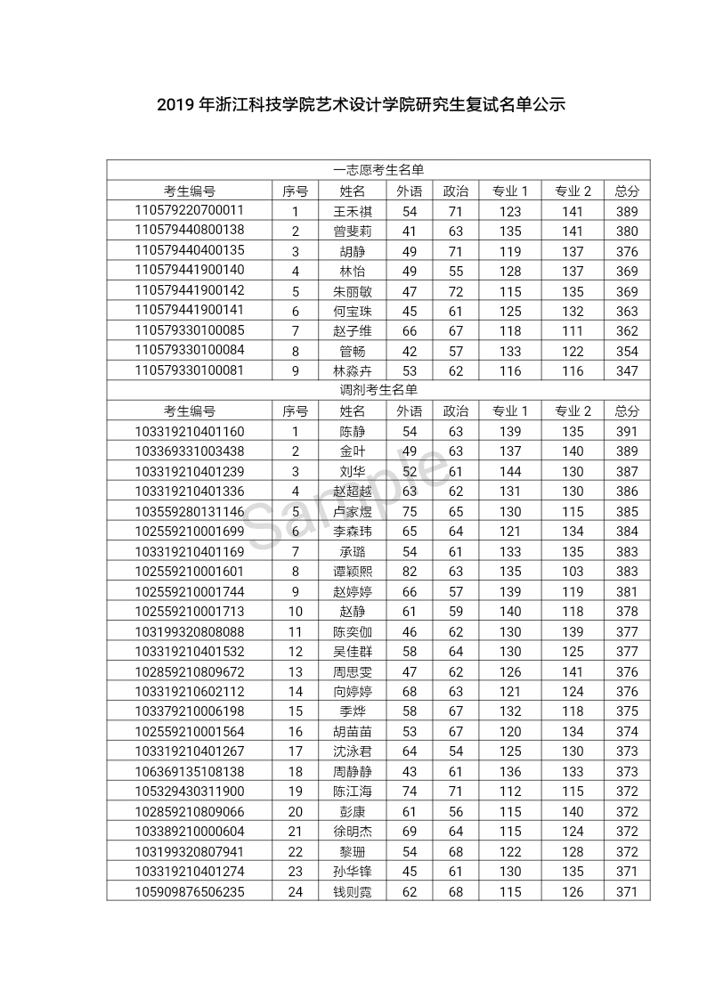 2019年浙江科技学院拉斯维加斯赌场 研究生复试名单