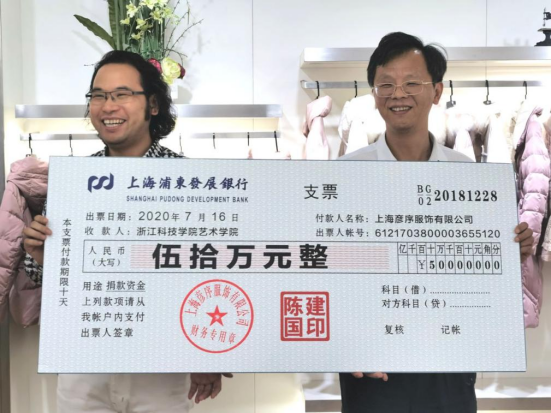 浙江科技学院党委副书记符宁平代表学校接受陈建国捐赠