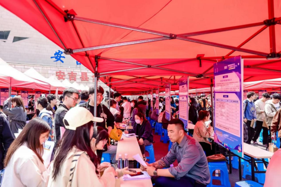 4月26日,“就业创业最安吉”——“十城百企千岗万人”高校毕业生千人专场招聘会在安吉龙山体育馆火热召开。